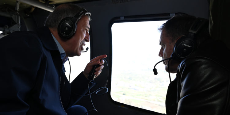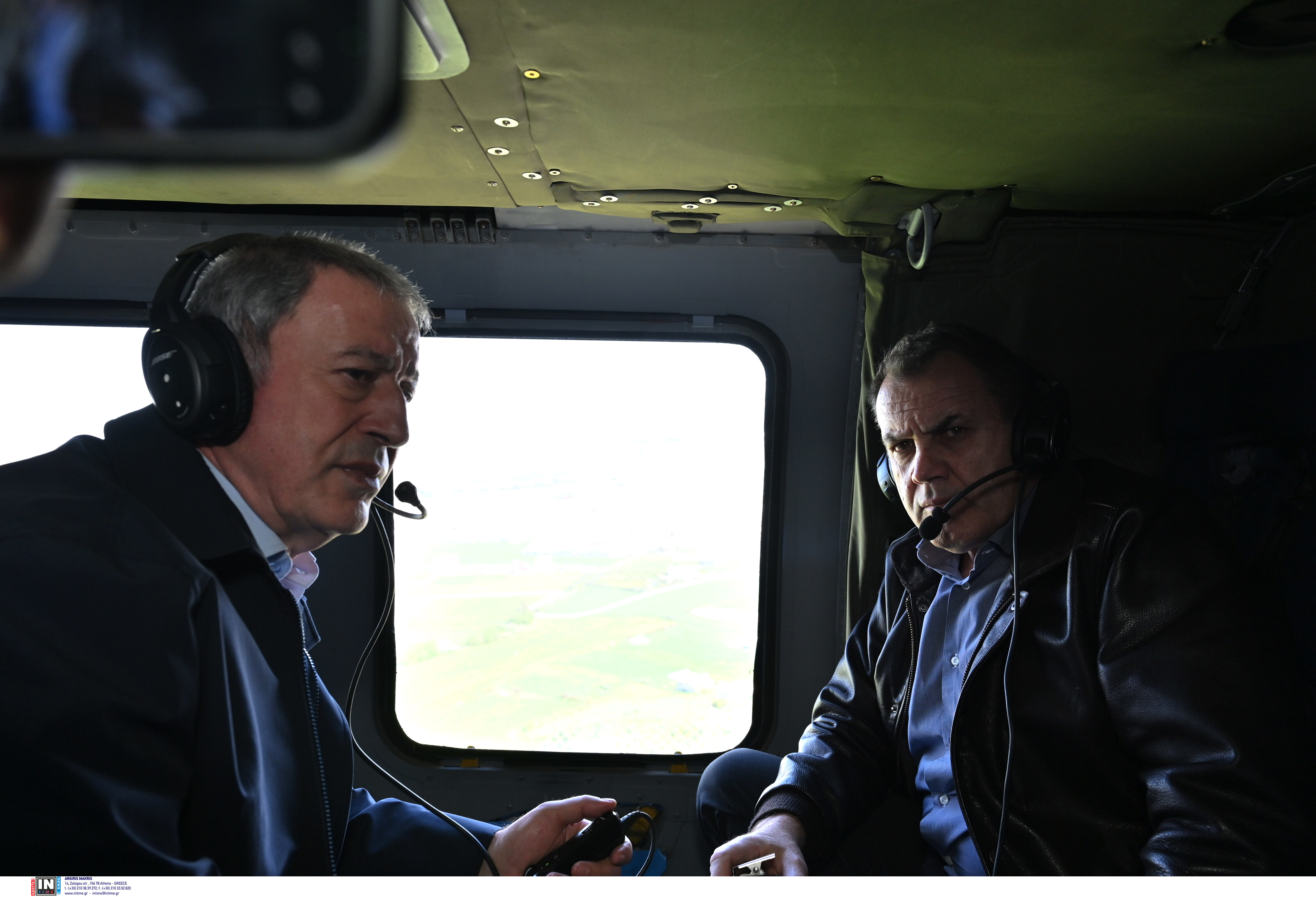 Bakanlar Akar ve Panagiotopoulos, deprem bölgesinde havadan incelemelerde bulundu.#MillîSavunmaBakanlığı #HulusiAkar pic.twitter.com/v00V5Kn7Kb