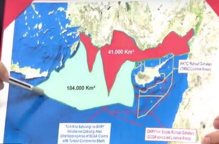Σύμφωνα, δε, με τον ένα χάρτη που φέρεται να παρουσίασε ο κ. Ακάρ κανένα νησί, όχι μόνο το Καστελόριζο, αλλά ούτε η Κύπρος και η Κρήτη μπορεί να έχουν πλήρη επήρεια σε θαλάσσιες ζώνες, και συνεπώς μπορεί έτσι να υπάρξουν θαλάσσια σύνορα μεταξύ της Τουρκίας και της Λιβύης, κάτι που φυσικά προϋποθέτει την «εξαφάνιση» όλης της ελληνικής υφαλοκρηπίδας στην Ανατολική Μεσόγειο.