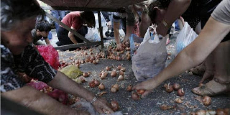 Περιττό να πούμε ότι το δημοσίευμα πλαισιώνεται με μεγάλη φωτογραφία ορισμένων γυναικών που προσπαθούν να μαζέψουν κρεμμύδια κάτω από πάγκο λαϊκής αγοράς.