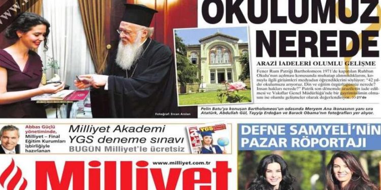 «Που είναι η Σχολή μας» είναι ο τίτλος της εφημερίδας Milliyet, όπου ο Οικουμενικός Πατριάρχης έδωσε συνέντευξη. Ο ίδιος τονίζει πως « επι 42 χρόνια περιμένουμε την επαναλειτουργία της Σχολής, που είναι η ελευθερία της θρησκείας. Που είναι τα ανθρώπινα δικαιώματα. Κανείς δεν συζητά μαζί μας το θέμα αυτό. Δεν μας έχουν συμπεριλάβει σε μια επιτροπή που ψάχνει φόρμουλες για το θέμα αυτό και όλα τα νέα να μαθαίνουμε από τα μέσα ενημέρωσης».