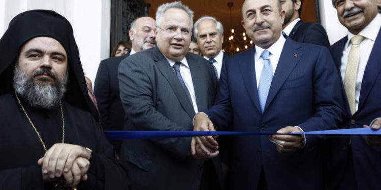 Επεισοδιακή συνέντευξη τύπου μετά τα εγκαίνια του ανακαινισμένου Προξενείου της Ελλάδας στη Σμύρνη, με σπόντες Τσαβούσογλου για τους 8 Τούρκους αξιωματικούς και ένα φαρμακερό σχόλιο του Νίκου Κοτζιά για υπερπτήσεις τουρκικών μαχητικών F-16 την ώρα των εγκαινίων.