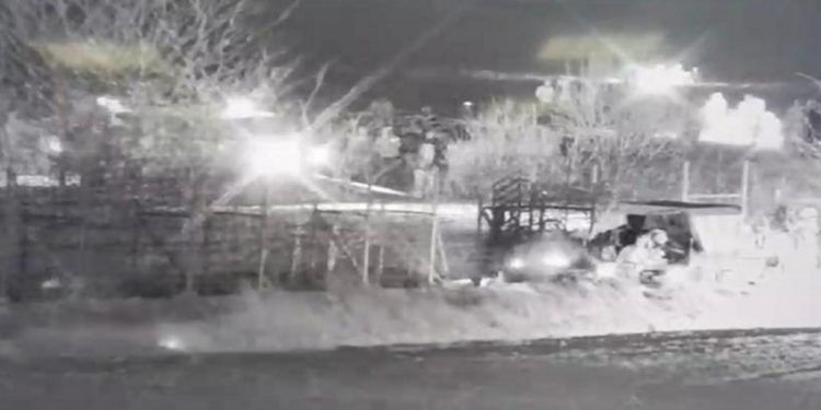 Βίντεο με τουρκικό τεθωρακισμένο όχημα συνοριακής επιτήρησης, το οποίο επιχειρεί με σχοινί ή συρματόσχοινο που έχει προσδεθεί πάνω του, να τραβήξει μέρος του φράχτη στα ελληνοτουρκικά σύνορα για να τον γκρεμίσει.