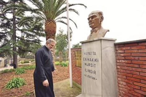 Ο κ. Λαμπρινιάδης (στην φωτογραφία στην Σχολή, μπροστά στο άγαλμα του Ατατούρκ) είπε ακόμα ότι το Αριστοτέλειο Πανεπιστήμιο Θεσσαλονίκης ολοκλήρωσε το έργο της σχετικά με την αποκατάσταση της Σχολής.