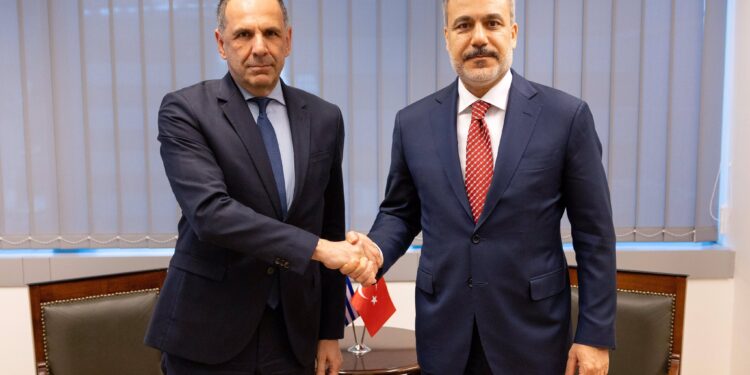 Με τον Τούρκο ομόλογο του Χακάν Φιντάν συναντήθηκε, σήμερα Πέμπτη 3 Απριλίου 2025, ο υπουργός Εξωτερικών Γιώργος Γεραπετρίτης στις Βρυξέλλες, στο περιθώριο της Συνόδου των Υπουργών Εξωτερικών του NATO.