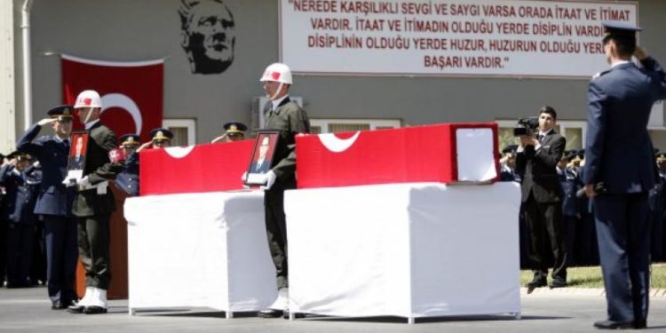 Μιλώντας στην τελετή κηδείας, ο Διοικητής της αεροπορικής βάσης της Μαλάτιας Μουσταφά Αβτζί είπε ότι “οι δύο πιλότοι έχασαν τη ζωή τους σαν ήρωες”.