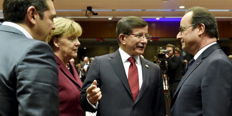 Ο Νταβούτογλου εκείνη τη στιγμή έκανε πως δεν άκουσε και “απάντησε” με το μόνιμο χαμόγελο που έχει “κολλημένο” στο πρόσωπο.