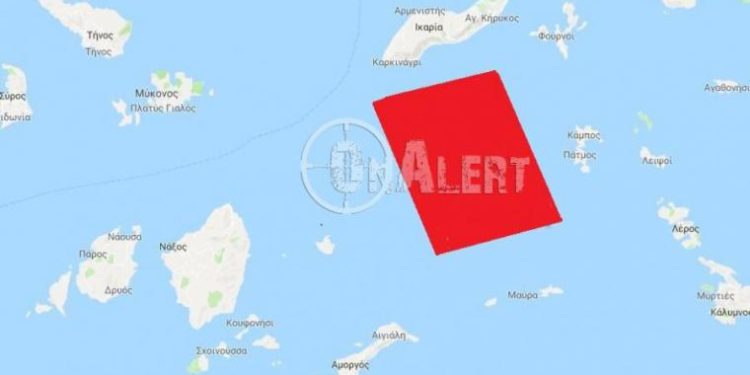 Ωστόσο εντύπωση προκαλεί το γεγονός ότι η θαλάσσια αυτή περιοχή βρίσκεται ακριβώς στο «κέντρο» ανάμεσα σε Μύκονο, Νάξο , Πάτμο, Αμοργό και Ικαρία, όπως φαίνεται ξεκάθαρα στο χάρτη.