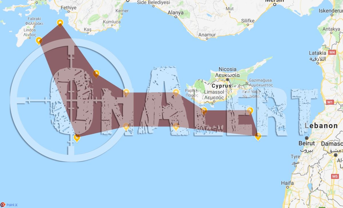 Τουρκική πρόκληση εκτός ορίων. Η υδρογραφική υπηρεσία του Πολεμικού Ναυτικού της γείτονος, μέσω του «υπερδραστήριου» σταθμού της Αντάλειας, εξέδωσε NAVTEX με την οποία δεσμεύει περιοχή-«μαμούθ» η οποία εκτείνεται από τα ανατολικά της Ρόδου και φτάνει έως και 130 χιλιόμετρα από την Βηρυττό.