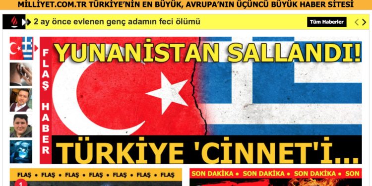 Η Τουρκία ήταν ο στόχος η Ελλάδα κλονίστηκε γράφει στον τίτλο της η ηλεκτρονική έκδοση της εφημερίδας Μιλιέτ. Στο δημοσίευμά της αναφέρεται στις πολιτικές αντιδράσεις που προκάλεσαν οι χθεσινές δηλώσεις του υπουργού Εθνικής Άμυνας κ. Πάνου Καμμένου. Με ανοίκειο τρόπο χαρακτηρίζει τον ΥΕΘΑ επικεφαλής του εθνικιστικού κόμματος ΑΝΕΛ.
