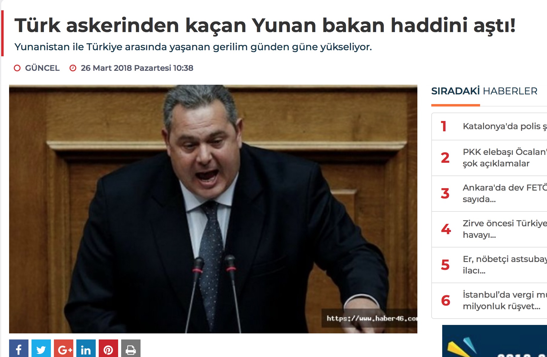 Τουρκικά ΜΜΕ για Καμμένο: Γλίτωσε από τους Τούρκους στρατιώτες – ξεπέρασε τα όρια