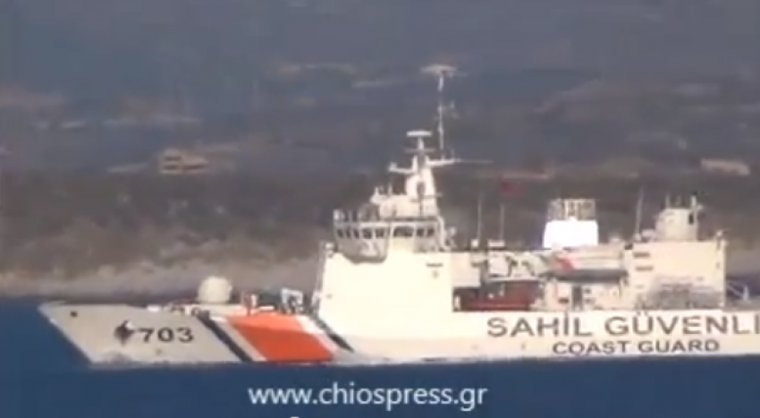 Σκάφος της τουρκικής ακτοφυλακής, παραβίασε τα χωρικά ύδατα στη Χίο. Όπως φαίνεται από τις φωτογραφίες και το βίντεο του chiospress.gr η τουρική ακταιωρός πέρασε πολύ κοντά από τα παράλια του νησιού.