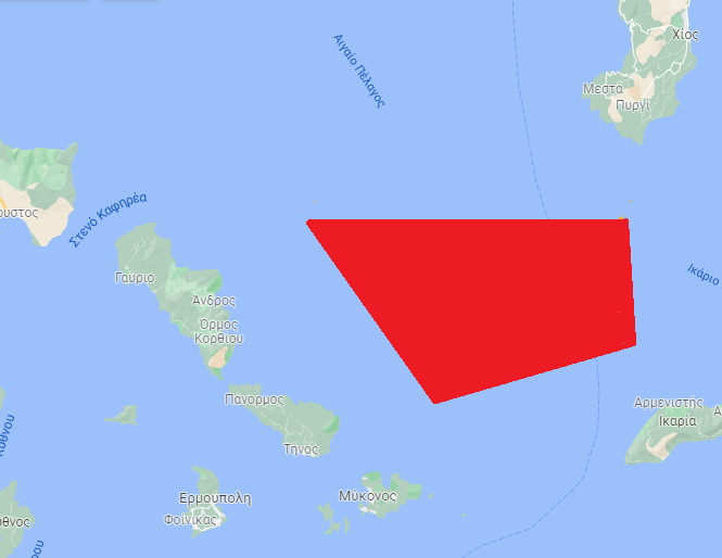 Την ώρα περίπου που οι Τούρκοι «παρενοχλούσαν» το ελικόπτερο που μετέφερε τον Υφυπουργό Εθνικής Άμυνας Νίκο Χαρδαλιά μεταξύ Καλολίμνου και Φαρμακονησίου, η υδρογραφική υπηρεσία της Σμύρνης προχώρησε στην έκδοση NAVTEX για ασκήσεις που θα πραγματοποιηθούν την ερχόμενη Πέμπτη 17 Φεβρουαρίου, δεσμεύοντας μεγάλη θαλάσσια περιοχή ανάμεσα στη Μύκονο, την Τήνο, τη Χίο, την Άνδρο και την Ικαρία.