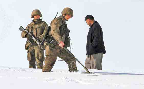Οι τούρκοι στρατιώτες με τα ειδικούς ανιχνευτές αυτή τη φορά δεν έψαχναν για νάρκες αλλά για αυτοκίνητα κάτω από τα χιόνια! Οι σφοδρές χιονοπτώσεις που δεν σταμάτησαν την τελευταία εβδομάδα προκάλεσαν τεράστια προβλήματα στην περιοχή Χακάρι της νοτιοανατολικής Τουρκίας όπου στο δρόμο Χακάρι-Σίρνακ εγκλωβίστηκαν πολλά οχήματα.
