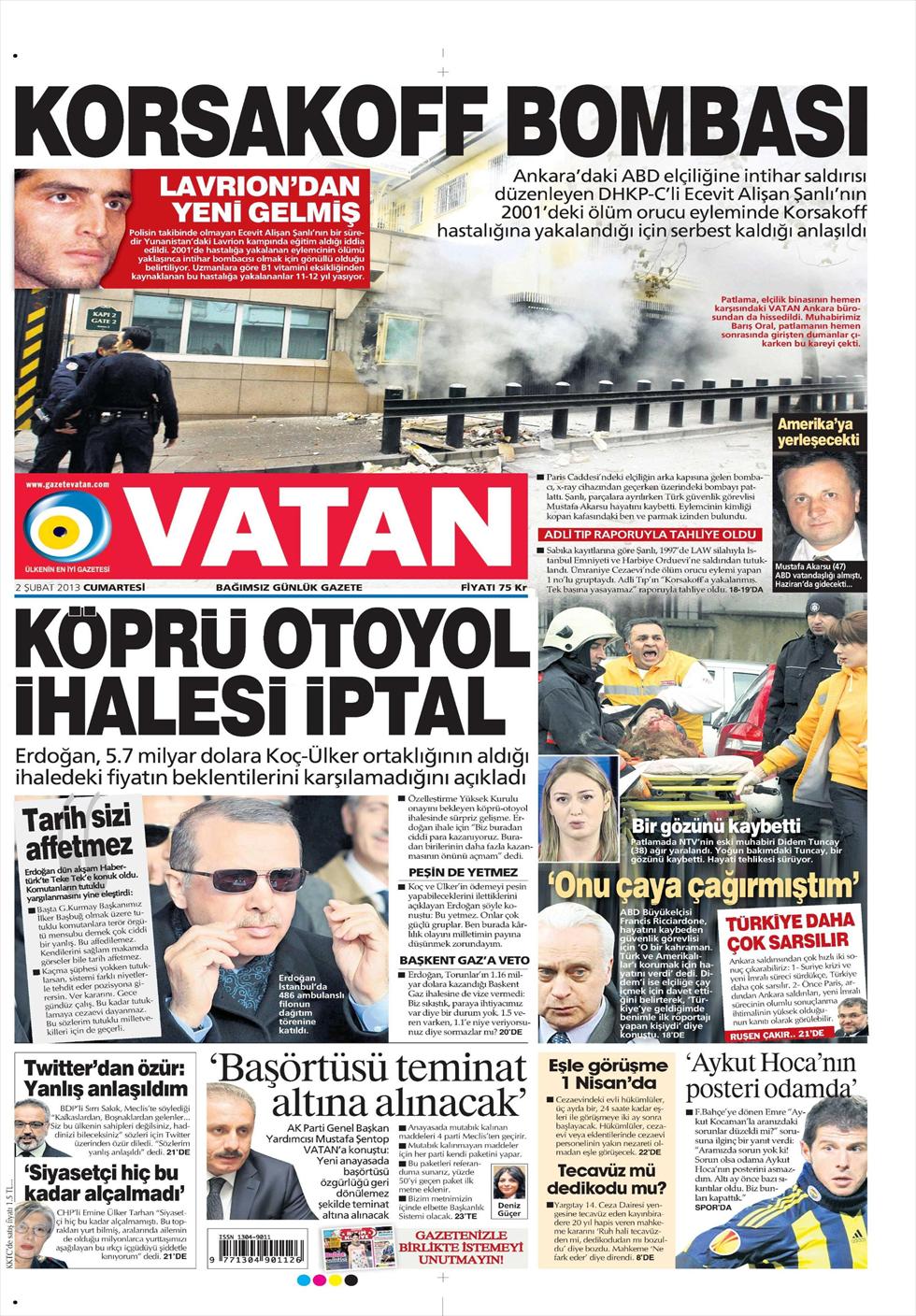 «Άκυρος ο διαγωνισμός γεφυρών και αυτοκινητοδρόμων» είναι ο τίτλος της Vatan. H τουρκική εφημερίδα αναφέρει πως ο Ερντογάν δεν είναι ικανοποιημένος από το αποτέλεσμα της ιδιωτικοποιήσεις των δρόμων όπου ισχυροί τουρκικοί όμιλοι είχαν προσφέρει 5.7 δισεκατομμύρια δολάρια. Ο τούρκος πρωθυπουργός φαίνεται να ζητά μεγαλύτερο τίμημα.