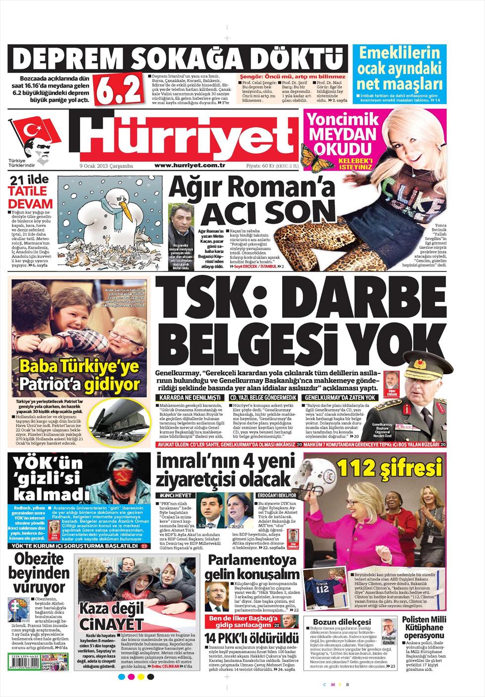 «Τουρκικές Ένοπλες Δυνάμεις: Δεν υπάρχει έγγραφο για πραξικόπημα» είναι ο τίτλος της Hürriyet. H τουρκική εφημερίδα αναφέρει πως ενώ το δικαστήριο της υπόθεσης «Βαριοπούλας», ανέφερε πως ο στρατός διαθέτει τα αυθεντικά έγγραφα που αποδεικνύουν πως υπήρχε αυτό το σχέδιο, το γενικό επιτελείο Ενόπλων Δυνάμεων διέψευσε κατηγορηματικά την πληροφορία αυτή.