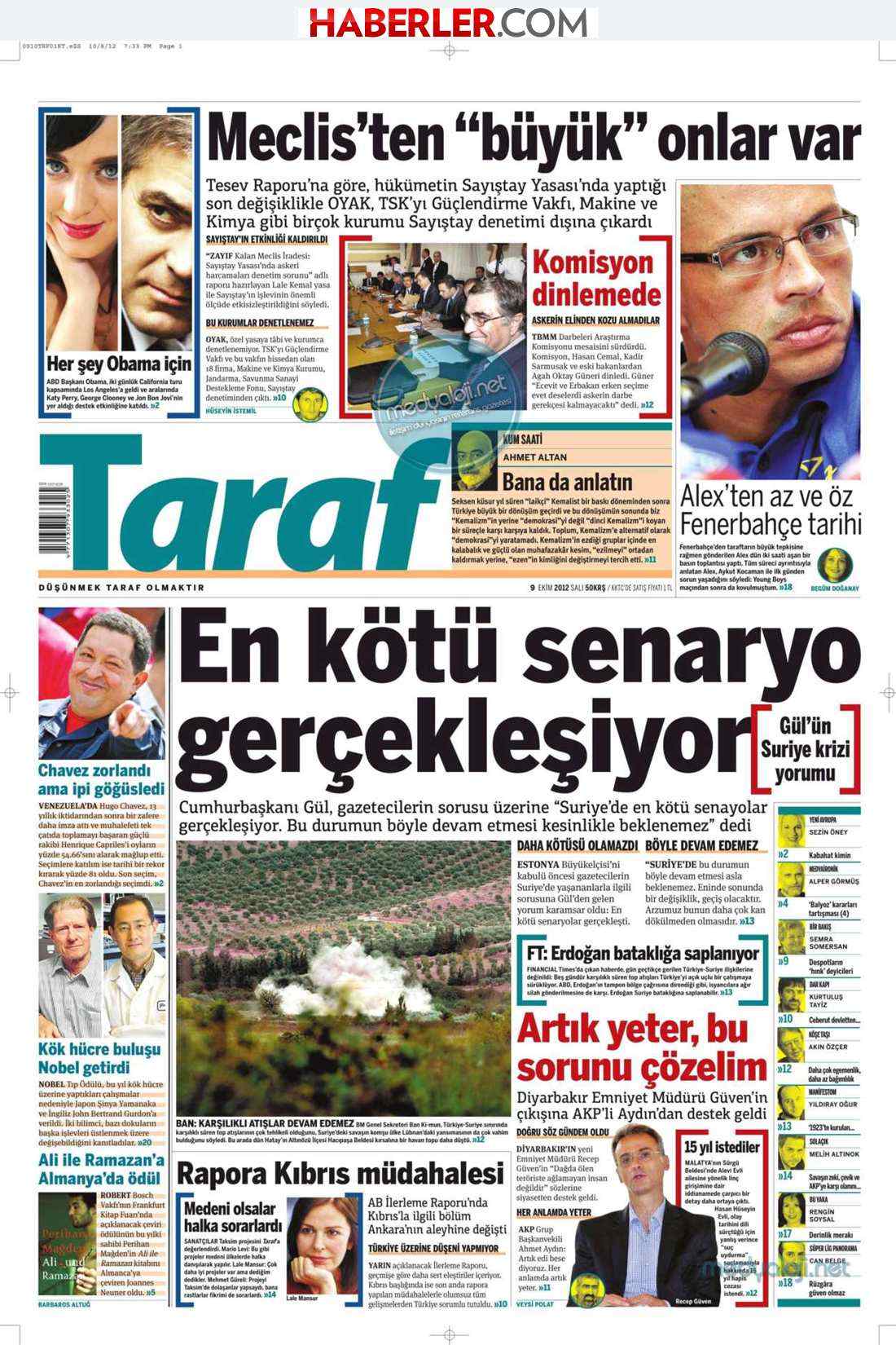 «Γίνεται πραγματικότητα το χειρότερο σενάριο» είναι ο τίτλος της τουρκικής εφημερίδας Taraf. H εφημερίδα αναφέρει πως ο τούρκος πρόεδρος Αμντουλάχ Γκιουλ αναφέρει πως στο θέμα της Συρίας συμβαίνει το χειρότερο σενάριο « δεν μπορεί να συνχειστεί αυτή η κατάσταση» αναφέρει.