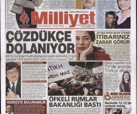 «Οσο επιλύεται τόσο περιπλέκεται» είναι ο τίτλος της Milliyet. H τουρκική εφημερίδα αναφέρεται στο θέμα της ιατροδικαστικής έκθεση του Οζάλ και γράφει πως «19 χρόνια μετά τον θάνατο του η έκθεση αντί να ξεκαθαρίσει τις υποθέσεις απλά τις φούντωσε καθώς ομόφωνα η επιτροπή τόνισε πως στη σορό του Οζάλ βρέθηκε δηλητήριο αλλά δεν ξέρει αν προκάλεσε τον θάνατο».