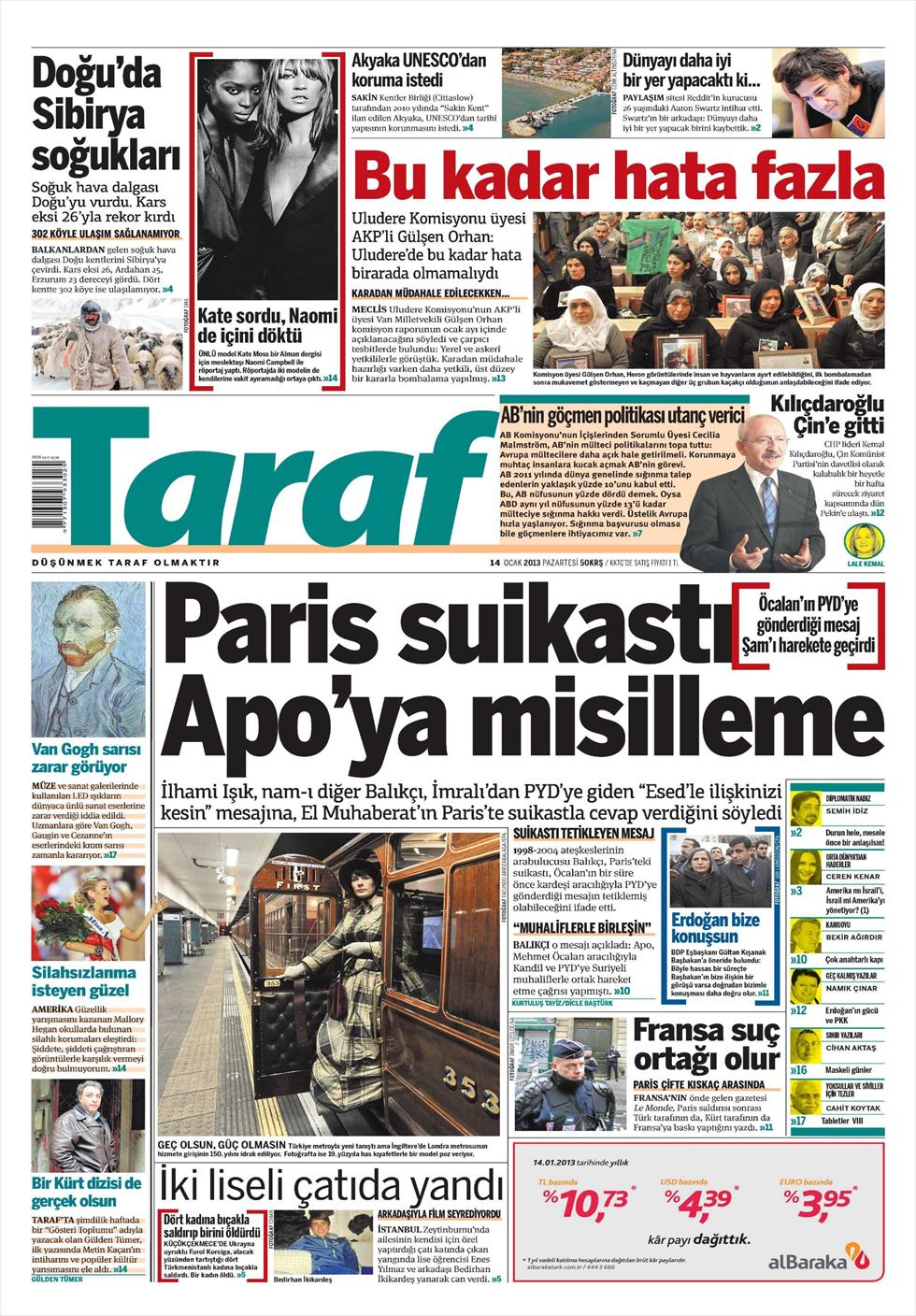 «Η δολοφονία στο Παρίσι είναι εκδίκηση στον Apo» είναι ο τίτλος της Taraf. H τουρκική εφημερίδα αναφέρει πως η δολοφονία των τριών ακτιβιστριών ήταν έργο από παρακλάδι του PKK στη Συρία. Σύμφωνα με την εφημερίδα ο Οτζαάν είχε ζητήσει από το παρακλάδι αυτό να σταματήσει τις επαφές του με τον Άσαντ και το μήνυμα ήταν η απάντηση αυτών προς τον Κούρδο ηγέτη.