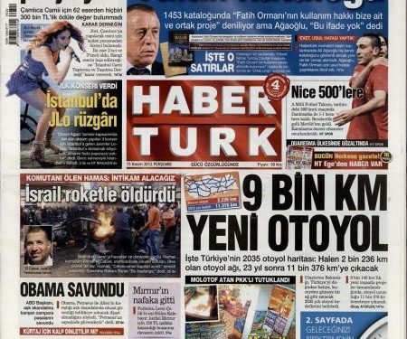 «9000 χιλιόμετρα νέοι αυτοκινητόδρομοι» είναι ο τίτλος της Ηabertürk. H τουρκική εφημερίδα αναφέρει πως το Υπουργείο Μεταφορών της Τουρκίας έχει καταστρώσει σχέδιο κατασκευής νέων αυτοκινητοδρόμων που το μήκος τους το 2035 μήκος τους θα φτάσει τα 11.376 χιλιόμετρα.