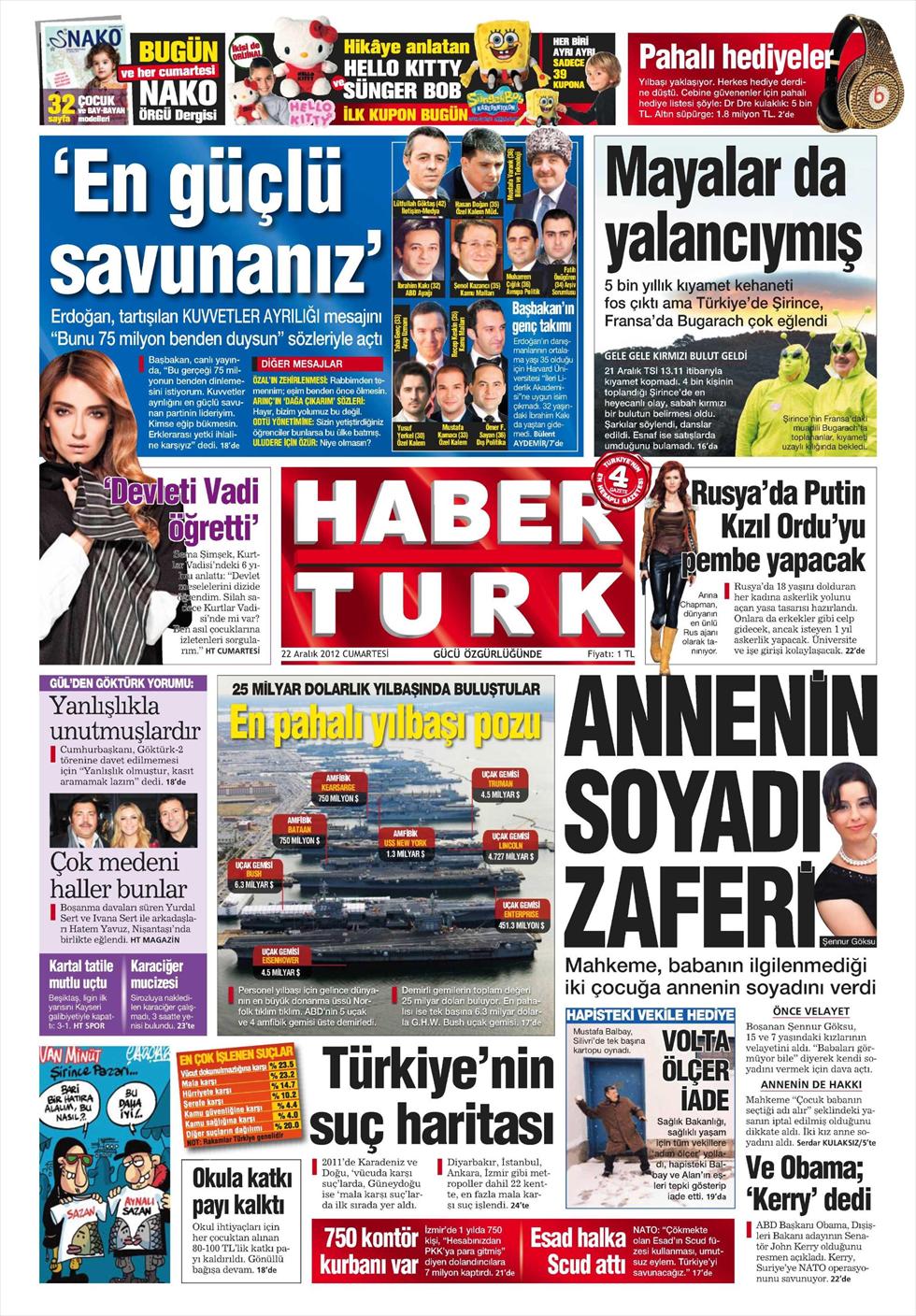 «Η νίκη της γυναίκας για το επώνυμο» είναι ο τίτλος της Habertürk. H εφημερίδα αναφέρει πως τουρκικό δικαστήριο αποφάσισε να δοθεί το επώνυμο της μητέρας σε δυο παιδιά λόγω της αδιαφορίας του πατέρα τους για τη διατροφή τους. Η απόαση αυτή θεωρείται ιστορική.