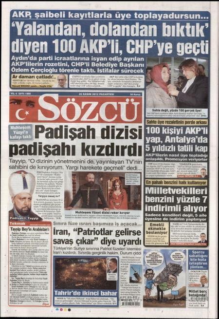 «Η σειρά με τον Σουλτάνο εκνεύρισε τον Σουλτάνο» είναι ο τίτλος της Sözcü. H τουρκική εφημερίδα αναφέρει πως ο Ερντογάν έχει νευριάσει με τον τρόπο παρουσίασης του Σουλεϊμάν του Μεγαλοπρεπούς στην ομώνυμη τηλεοπτική σειρά «και απειλεί τους παραγωγούς της ακόμη και με δικαστική δίωξη».