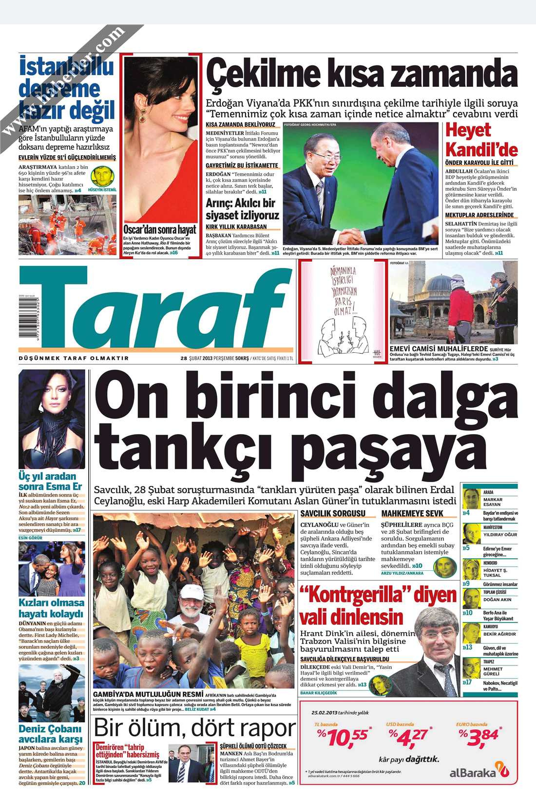 «Το ενδέκατο κύμα συλλήψεων στον στρατηγό των αρμάτων μάχης» είναι ο τίτλος της Taraf που αναφέρεται στο ίδιο θέμα και γράφει πως «ο Τζεϊλάνογλου αρνήθηκε τις κατηγορίες και ισχυρίστηκε πως την ημέρα της κυκλοφορίας των αρμάτων μάχης στους δρόμους, ο ίδιος ήταν σε διακοπές».