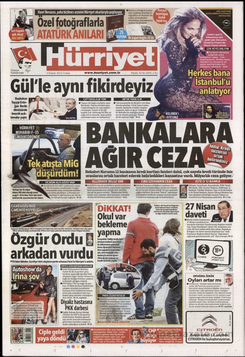 «Βαριά πρόστιμα στις τράπεζες» είναι ο τίτλος της Hurriyet. H τουρκική εφημερίδα αναφέρει πως η Επτροπή Ανταγωνισμού της Τουρκίας «διαπίστωσε πως οι τράπεζες καθόριζαν μαζί τα επιτόκια των πιστωτικών καρτών και θα επιβληθούν πρόστιμα πολλών δισεκατομμυρίων σε όσες δημιούργησαν καρτέλ»