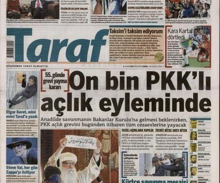 «Σε απεργία πείνας, δέκα χιλιάδες μέλη του PKK» είναι ο τίτλος της Taraf. H τουρκική εφημερίδα αναφέρει πως η κουρδική οργάνωση έχει δώσει εντολή στους κρατούμενους στις τουρκικές φυλακές , να ξεκινήσουν απεργία πείνας προς συμπαράσταση των υπολοίπων απεργών πείνας που έχουν ολοκληρώσει την 55η ημέρα της απεργίας πείνας..