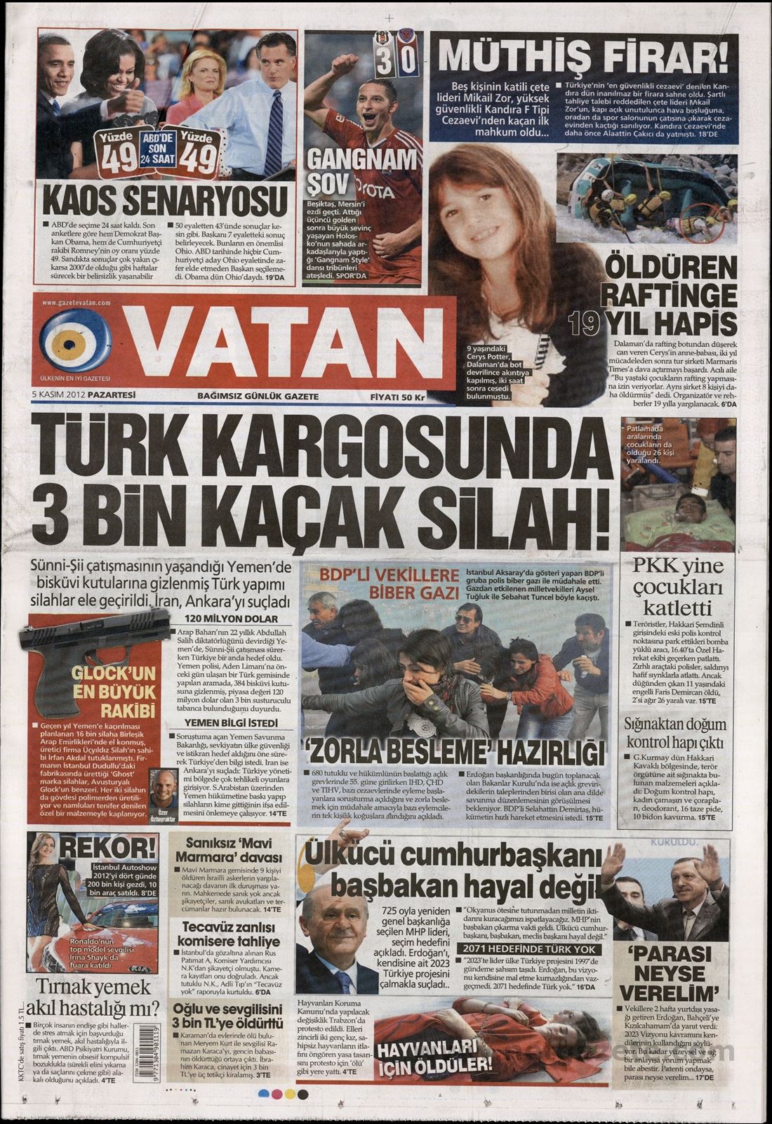 « 3000 παράνομα όπλα σε τουρκικό φορτίο» είναι ο τίτλος της Vatan. H τουρκική εφημερίδα αναφέρει πως στην Υεμένη όπου υπάρχουν συγκρούσεις ανάμεσα στους Σιίτες και Σουνίτες σε φορτίο τουρκικού πλοίου βρέθηκαν όπλα. «Το Ιράν κατηγορεί την Τουρκία πως στηρίζει τους Σουνίτες» αναφέρει η εφημερίδα.