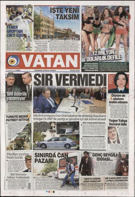 «Δεν έδωσε μυστικά» είναι ο τίτλος της Vatan. H τουρκική εφημερίδα αναφέρει πως ο πρώην αρχηγός των τουρκικών Ενόπλων Δυνάμεων Γιασάρ Μπουγιούκανιτ στην ανάκριση του από την επιτροπή του τουρκικού Κοινοβουλίου το οποίο ερευνά τα πραξικοπήματα στην Τουρκία.