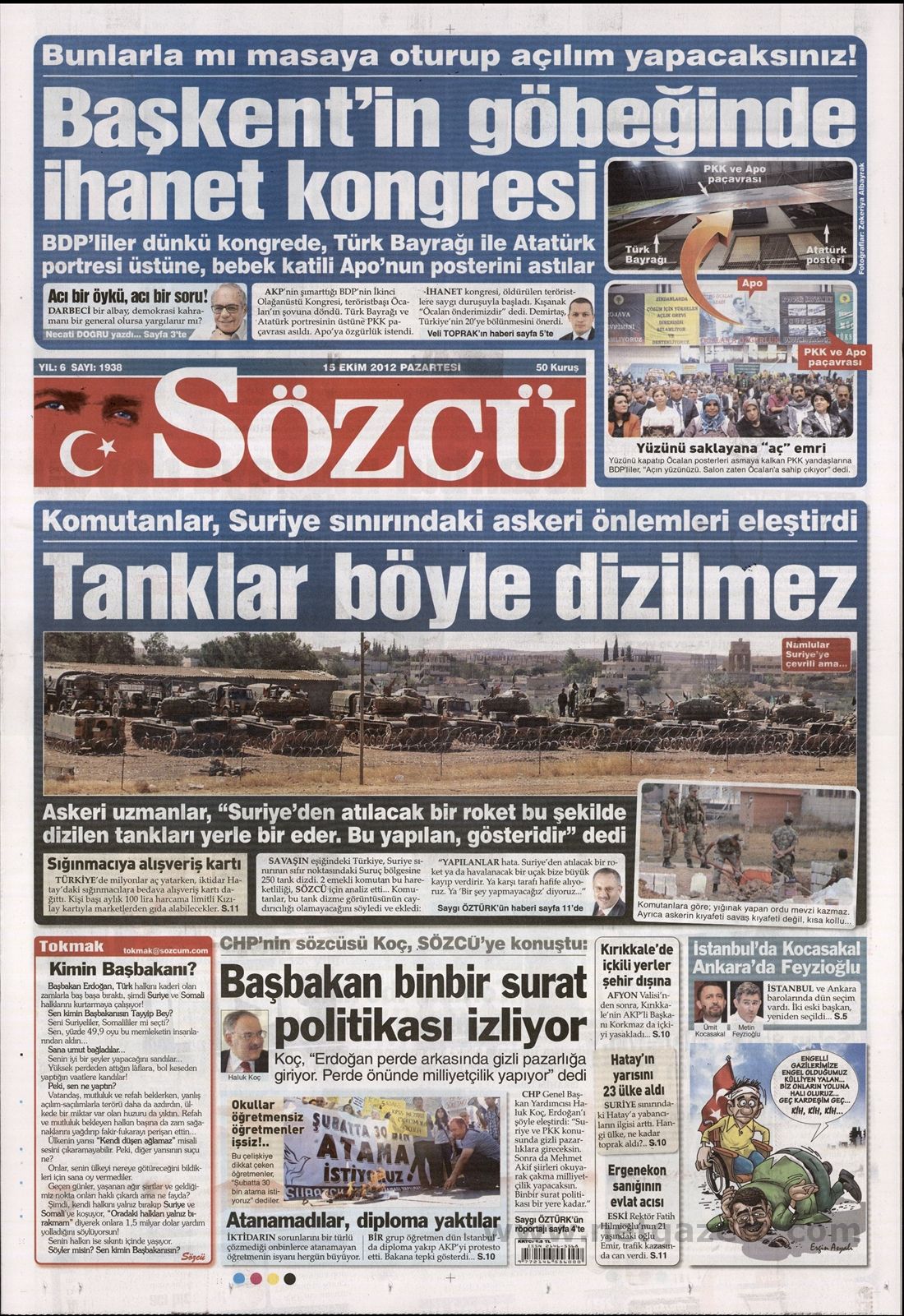 «Τα άρματα μάχης δεν στήνονται με αυτόν τον τρόπο» είναι ο τίτλος της Sözcü. H τουρκική εφημερίδα κατηγορεί τις φωτογραφίες που δημοσιεύονται από τον τουρκικό στρατό με δεκάδες άρματα να είναι παρατεταγμένα στα σύνορα Συρίας-Τουρκίας. «Σε περίπτωση που η Συρία επιτεθεί όλα τα άρματα θα καταστραφούν μέσα σε λίγα λεπτά αυτά που κάνουν είναι ένα σόου» γράφει η εφημερίδα.