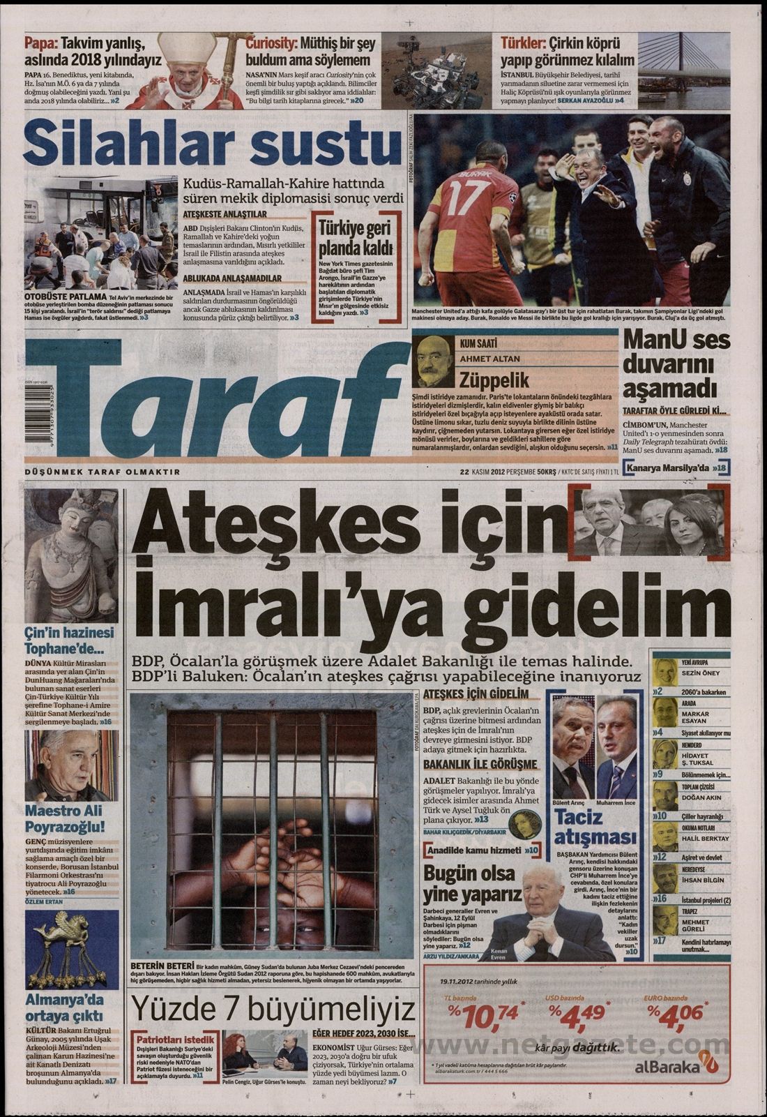 «Ας πάμε στο Ιμραλι για κατάπαυση του πυρός» είναι ο τίτλος της Radikal. H τουρκική εφημερίδα αναφέρει πως βουλευτές του φιλοκουρδικού κόμματος έχουν ηδη έρθει σε επαφή με το Υπουργείο Δικαιοσύνης για να συναντήσουν τον Οτζαλάν καθώς πιστεύουν πως μαζί του μπορούν να πετύχουν την κατάπαυση του πυρός.