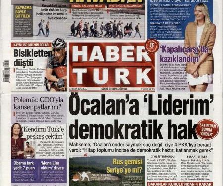 «Δημοκρατικό δικαίωμα το να αποκαλείς τον Οτζαλάν ως «ηγέτης μου»» είναι ο τίτλος της Habertürk. H τουρκική εφημερίδα αναφέρει πως δικαστήριο αθώωσε 4 Κούρδους που αποκαλούσαν τον Οτζαλάν ως ηγέτη τους. Η Habertürk αναφέρει πως ο δικαστήριο θεώρησε δημοκρατικό δικαίωμα την έκφραση αυτή.