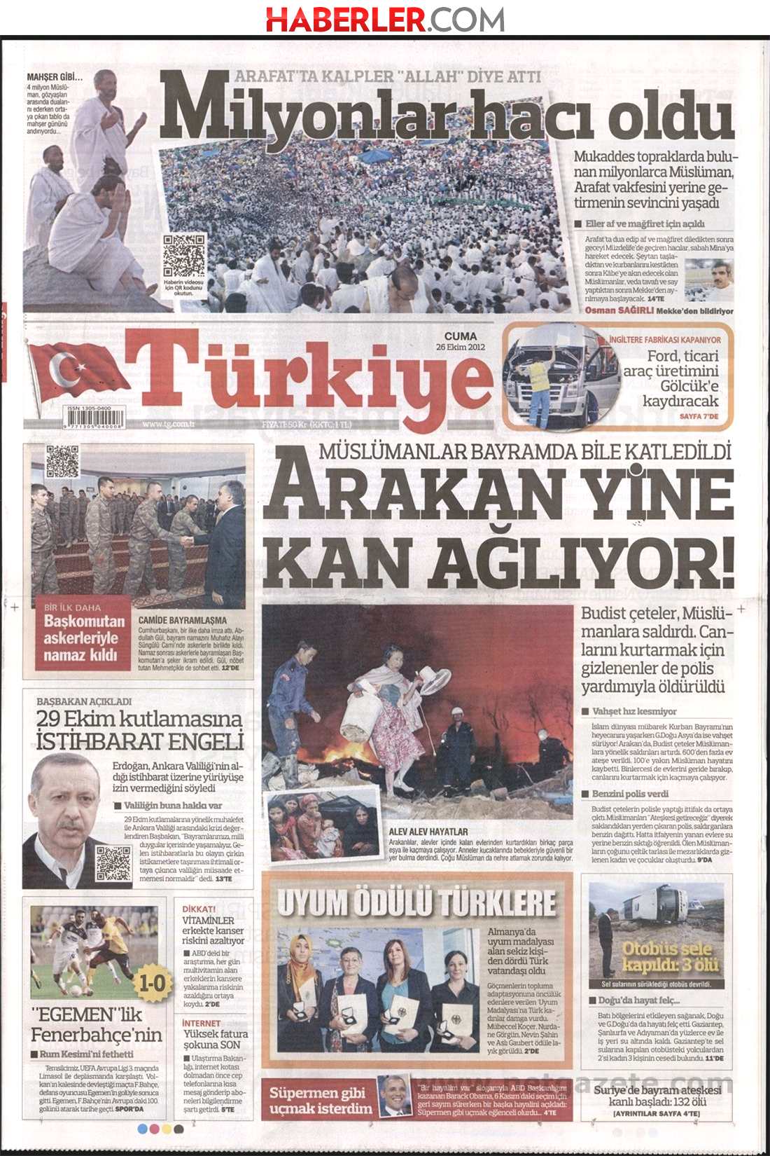 «Εκατομμύρια άνθρωποι πήγαν στο Χατζ» είναι ο τίτλος της Türkiye. H τουρκική εφημερίδα αναφέρει πως λόγω του Μπαϊραμιού των Μουσουλμάνων εκατομμύρια άνθρωποι απ’όλο τον κόσμο πήγαν στην Μέκκα για να προσκυνήσουν.