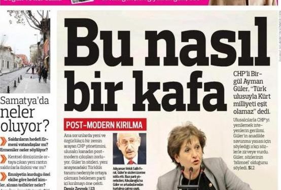 «Τι κεφάλι είναι αυτό» είναι ο τίτλος της Radikal που κατηγορεί τη στάση της Αϊμάν.