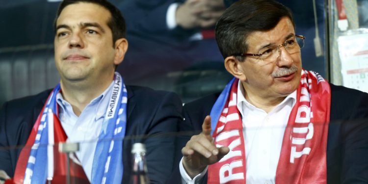 Τσίπρας-Νταβούτογλου είχαν την πρώτη επαφή τους στο φιλικό ποδοσφαιρικό αγώνα Τουρκίας-Ελλάδας. Το ζητούμενο είναι να μην δεχτεί “γκολ” ο Έλληνας πρωθυπουργός στις συνομιλίες που θα έχει στην Τουρκία, για το καυτό θέμα των προσφύγων.