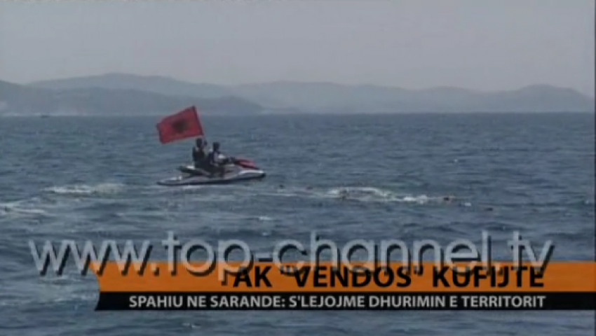 Οι έξαλλοι αλβανοί εθνικιστές τοποθέτησαν συμβολικά μια κόκκινη λωρίδα, με τη βοήθεια μερικών τζετ-σκι,στο σημείο όπου μπόρεσαν να φθάσουν.
