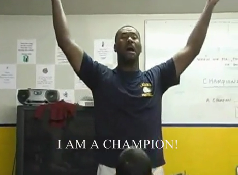 Είναι η ομιλία ενός προπονητή σε μια ομάδα.Δεν έχει σημασία πια,δεν έχει σημασία σε τι σπορ και σε ποια χώρα.Σημασία έχει ο τρόπος που ο προπονητής εμψυχώνει τους παίκτες του για να πιστέψουν ότι μπορούν -όλοι μαζί και ο καθένας χωριστά- να πετύχουν τον στόχο.Να είναι πρωταθλητές.Και τους κάνει να νοιώσουν ήδη πρώτοι.