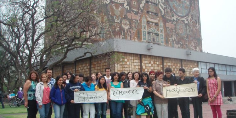 Η Μεξικάνα Καθηγήτρια, Ναταλία Μορελεόν και οι φοιτητές της, μας εκφράζουν την συμπαράστασή τους μπροστά στο Πανεπιστημιακό κτήριο στο οποίο σπουδάζουν.