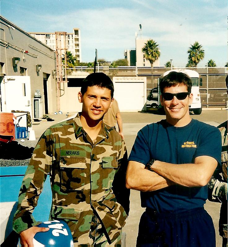 Δεν είχαν περάσει 5 λεπτά από την έναρξη της υποβρύχιας πορείας μας όταν το ζευγάρι μου ένας νεαρός Αμερικανός Υπαξιωματικός, δεύτερη γενιά Έλληνας, μου έκανε σινιάλο να αναδυθούμε. Στην επιφάνεια ευτυχώς λίγο μακριά από την βάρκα των εκπαιδευτών μου είπε ότι ο αφόρητος πόνος από τον μηνίσκο στο ΑΡ γόνατο τον αναγκάζει να χρησιμοποιεί κυρίως το δεξί στο οποίο παθαίνει συνεχώς κράμπες. Θα τους φωνάξω να με πάρουν πάνω. Όχι, όχι τώρα του ψιθύρισα, σφίξε τα δόντια, την Δευτέρα μπαίνουμε στην 3η φάση όλα θα είναι διαφορετικά. Θα πιαστείς από τον πίσω ιμάντα της καταδυτικής συσκευής μου και θα κολυμπάω εγώ και τους δύο του είπα. Έτσι και έγινε, καταδυθήκαμε στο όριο των 7 μέτρων για να μην μας δούνε οι εκπαιδευτές κοντά στον στόχο όπου υπήρχαν μεγάλοι προβολείς. Ήταν το πιο ατελείωτο, επίπονο και εξαντλητικό 50λεπτο σε όλη την εκπαίδευση. Το άγχος μου μεγάλο, γιατί από τα 7 μέτρα και κάτω το καθαρό οξυγόνο γίνεται τοξικό και η λιποθυμία έρχεται απροειδοποίητα. Ευτυχώς πήγαν όλα καλά. Τόσα χρόνια έχουν περάσει και όταν επικοινωνώ μέσω e-mail με το ζευγάρι μου λέει ευχαριστώ για εκείνη την κατάδυση.