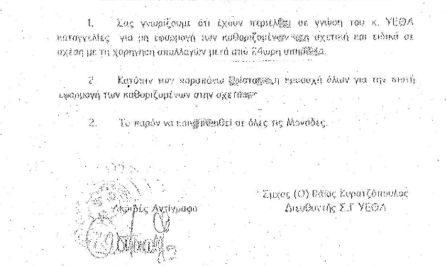 Πολλοί διοικητές έγραψαν τη διαταγή στα παλιά τους τα παπούτσια με αποτέλεσμα να υπάρχει σωρεία καταγγελιών για τη μη τήρησή της.