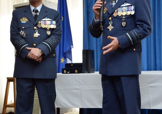 Με ιδιαίτερη συγκίνηση, σε εκτέλεση της 1/Σ. 9η/1-11-2011 απόφασης του ΚΥΣΕΑ, παραδίδω σήμερα τα καθήκοντα του Αρχηγού Γενικού Επιτελείου Αεροπορίας στον ιερό χώρο που πριν 38 χρόνια ως Ίκαρος εισήλθα στην οικογένεια της Πολεμικής Αεροπορίας.