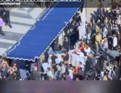 Στη Καλαμάτα η παρέλαση δεν διακόπηκε απλώς. Οι πολίτες όρμηξαν στην εξέδρα των επισήμων και οι πολιτικοί αναγκάστηκαν να φύγουν κυριολεκτικά τρέχοντας για να αποφευχθούν τα χειρότερα.