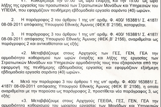 Οι Αρχηγοί θα αποφασίζουν για το ωράριο…αποφάσισε ο ΥΕΘΑ