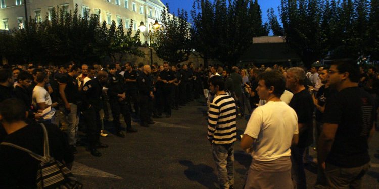 Συγκέντρωση διαμαρτυρίας πραγματοποίησαν σήμερα το απόγευμα οι συνοριοφύλακες και οι ειδικοί φρουροί μπροστά από την είσοδο της Βουλής, στη Βασιλίσσης Σοφίας. Ένστολοι από όλη την Ελλάδα διαμαρτυρήθηκαν φωνάζοντας συνθήματα και κρατώντας πανό, με βασικά αιτήματα να αρθούν οι κρατήσεις που τους έχουν επιβληθεί και το «πάγωμα» των μισθολογικών προαγωγών, ενώ ζήτησαν τον «καθορισμό κατώτατου μισθού επιβίωσης του αστυνομικού» αλλά και την αναστολή των δόσεων των στεγαστικών δανείων των ένστολων, μέχρι του σημείου που θα θεωρηθεί ασφαλές γι’ αυτούς.