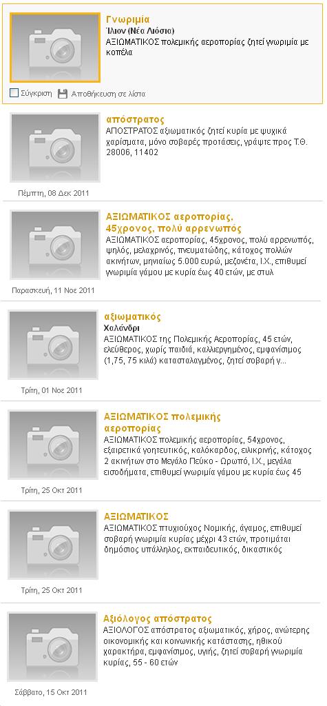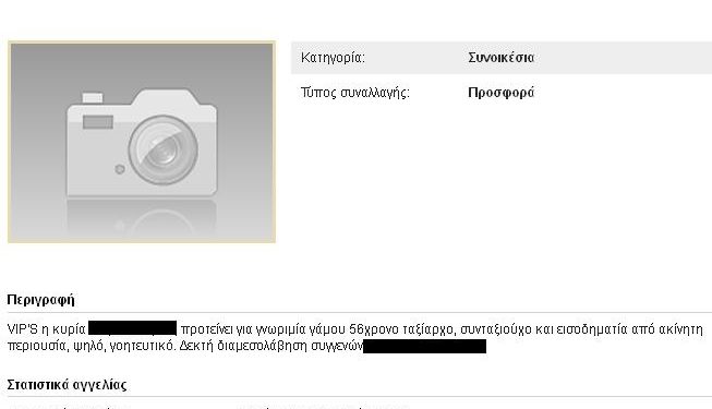 Αλλος πάλι, προβάλλει τη σχέση ύψους – βάρους (1,75 – 75 κιλά). Ενας άλλος τα ακίνητα, άλλος τα πτυχία, άλλος ξεκαθαρίζει ότι επιθυμεί γνωριμία κατά προτίμηση με δημόσιο υπάλληλο, εκπαιδευτικό ή δικαστικό…