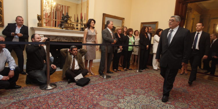 Οι δημοσιογράφοι υποδέχτηκαν στο Προεδρικό Μέγαρο τον Ν.Μιχαλολιάκο καθισμένοι στο πάτωμα.Εκείνος είδε τον Πρόεδρο και δήλωσε…τα αυτονόητα.