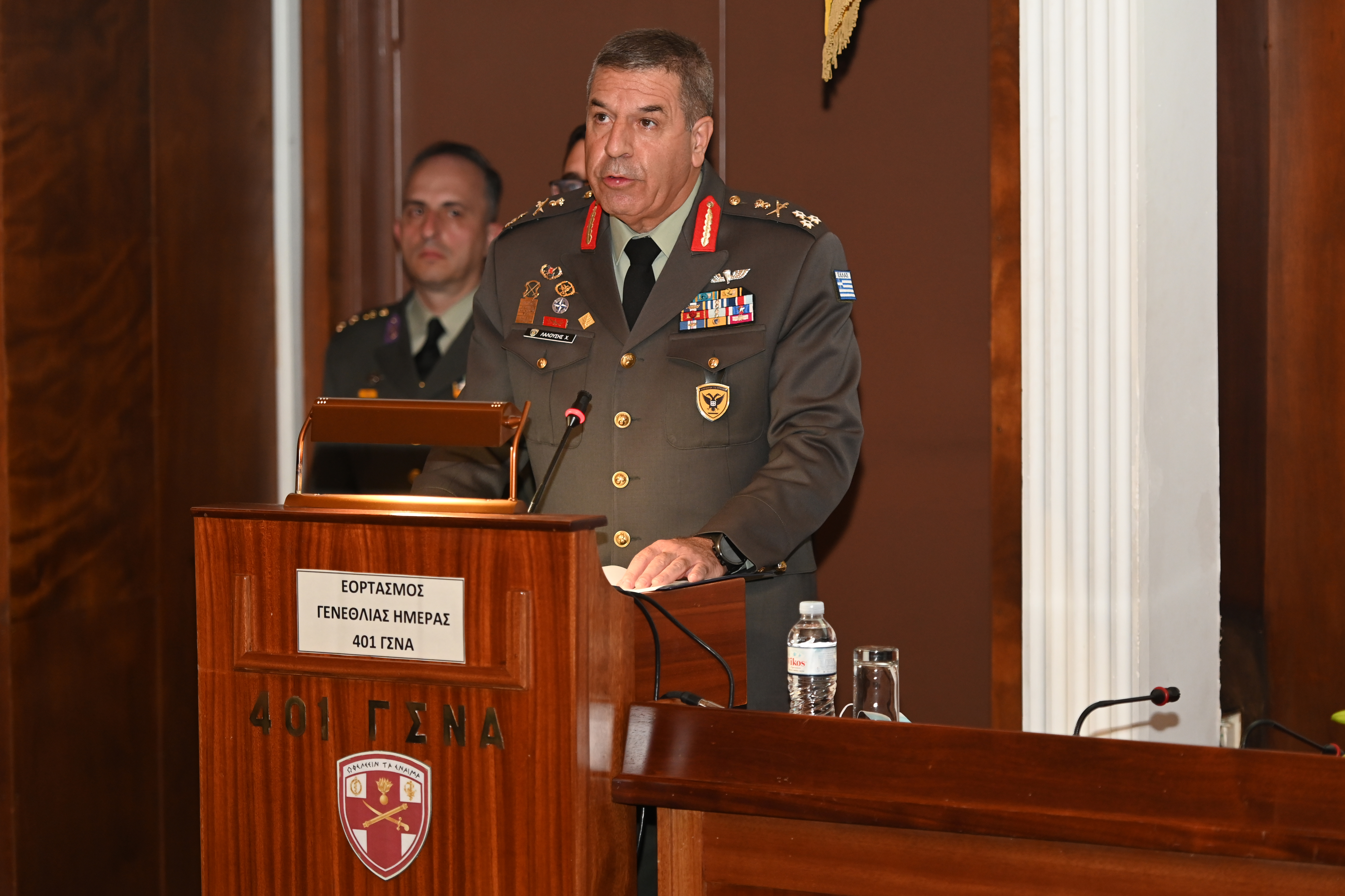 Χαιρετισμό απηύθυναν ο Α/ΓΕΕΘΑ και ο Αρχηγός του ΓΕΣ, ενώ ο Διοικητής του 401 ΓΝΣΑ Υποστράτηγος Δημήτριος Κασίμος ανέγνωσε την Ημερήσια Διαταγή και παρέθεσε σύντομο Ιστορικό του Νοσοκομείου.