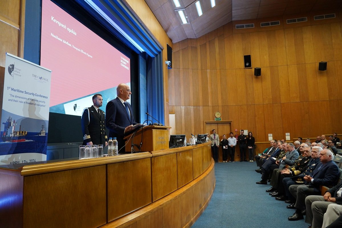 Ιδιαίτερη μνεία έκανε στις δράσεις και επιχειρήσεις των Ενόπλων Δυνάμεων σε όλους τους τομείς που λειτουργούν συμπληρωματικά επί της θαλάσσιας ασφάλειας σε ξηρά, αέρα, κυβερνοχώρο και διάστημα.
