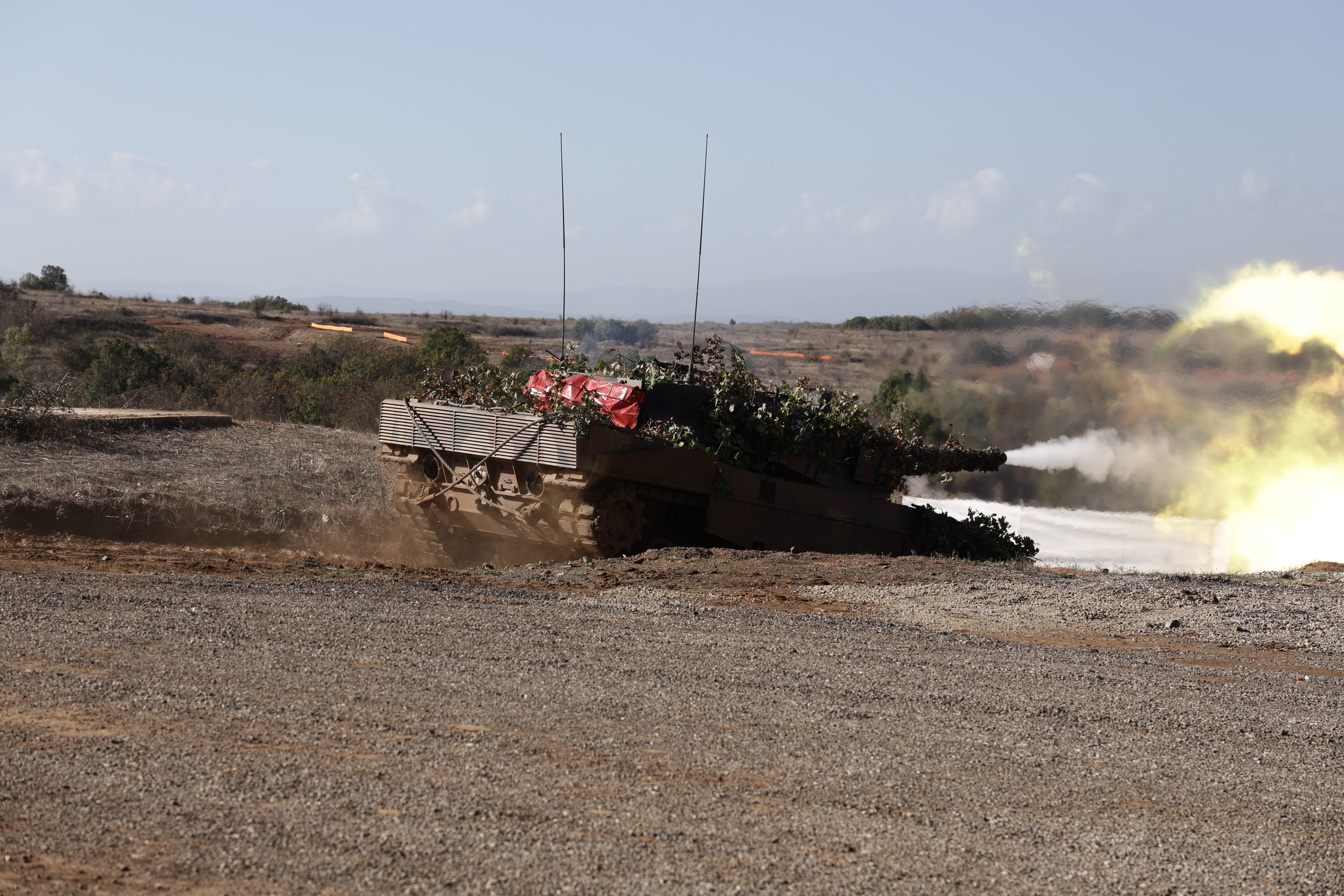 Με την ολοκλήρωση της άσκησης το πλήρωμα του τεθωρακισμένου οχήματος μάχης MARDER επέδωσε τη σημαία του Τακτικού Συγκροτήματος στην Πρόεδρο της Δημοκρατίας.